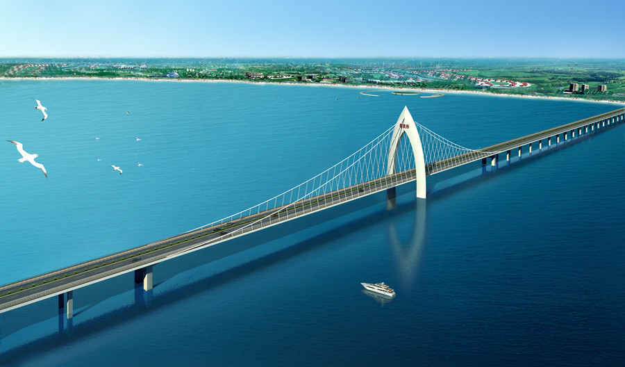 Le projet du pont-tunnel dans la zone touristique Sandao de la baie Tangshan